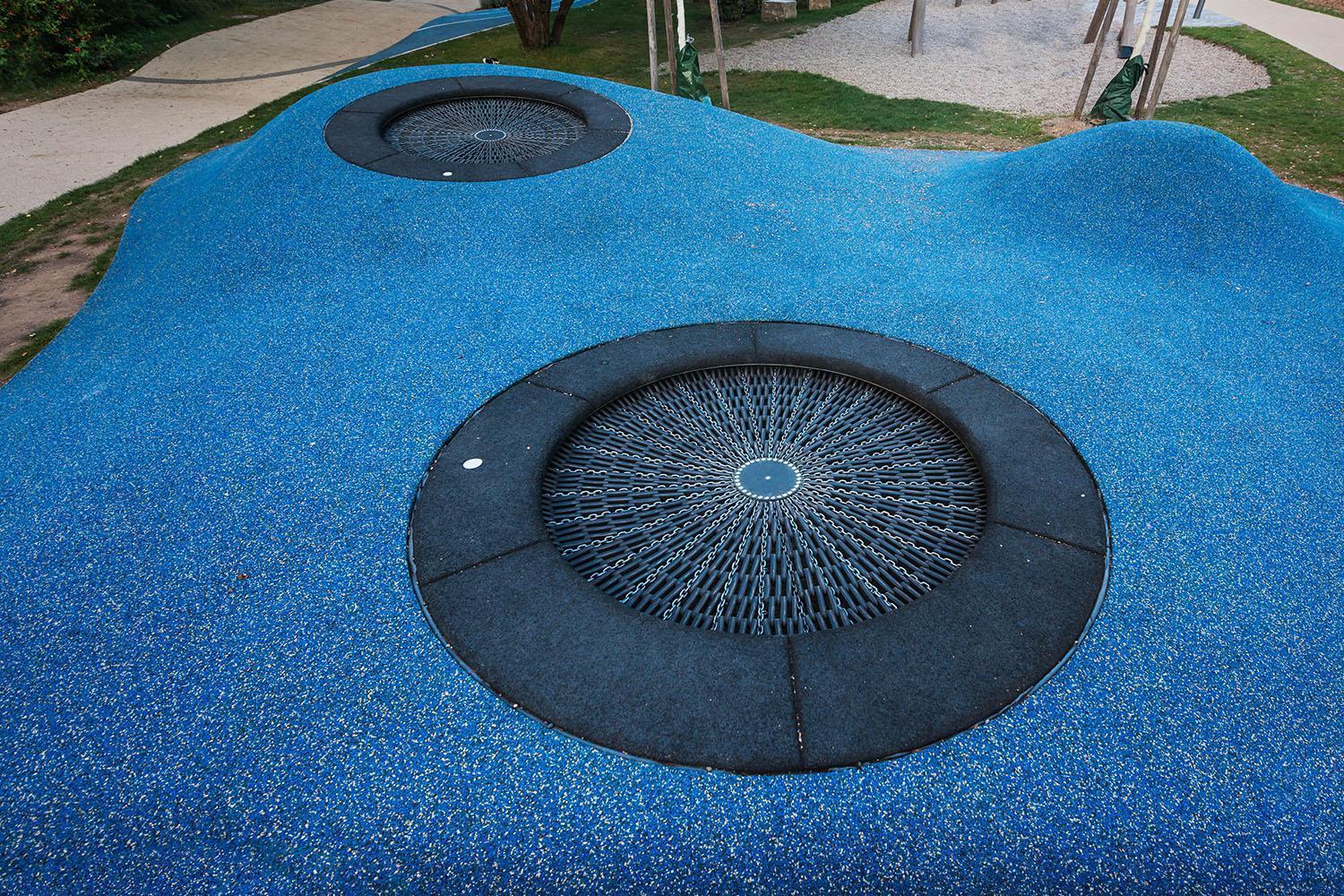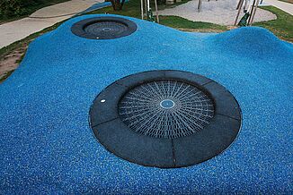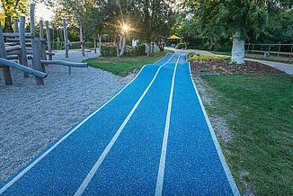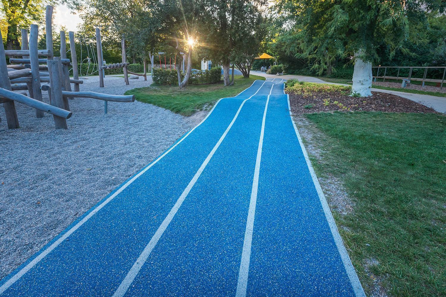 Ein weiterer Vorteil des Bodens REGUPOL playfix fun ist seine Modellierbarkeit. So können auch hügelige Landschaften realisiert werden, die selbstverständlich an jeder Stelle die gleichen Fallschutzeigenschaften aufweisen wie auf ebenen Flächen. Dabei kann der Boden an alle Spielgeräte und Anschlüsse nahtlos angearbeitet werden.