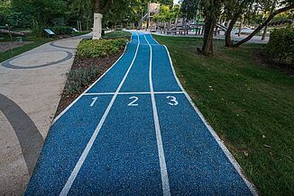 Bewegung macht Spaß. Gemeinsam noch viel mehr. Hierfür spendete die Dietmar Hopp Stiftung 19 Bewegungs- und Begegnungsanlagen in der Metropolregion Rhein-Neckar. Die Anlagen sollen ein Treffpunkt für Menschen aller Generationen sein. REGUPOL playfix Kunststoffböden von der Firma REGUPOL BSW GmbH unterstützen die Anforderungen der Stiftung an ihre Anlagen, denn die im Ortseinbau installierten, fugenlosen Böden sind barrierefrei, bieten geprüfte Fallschutzeigenschaften und laden mit elastischen Eigenschaften und ansprechendem Design zum Verweilen ein.