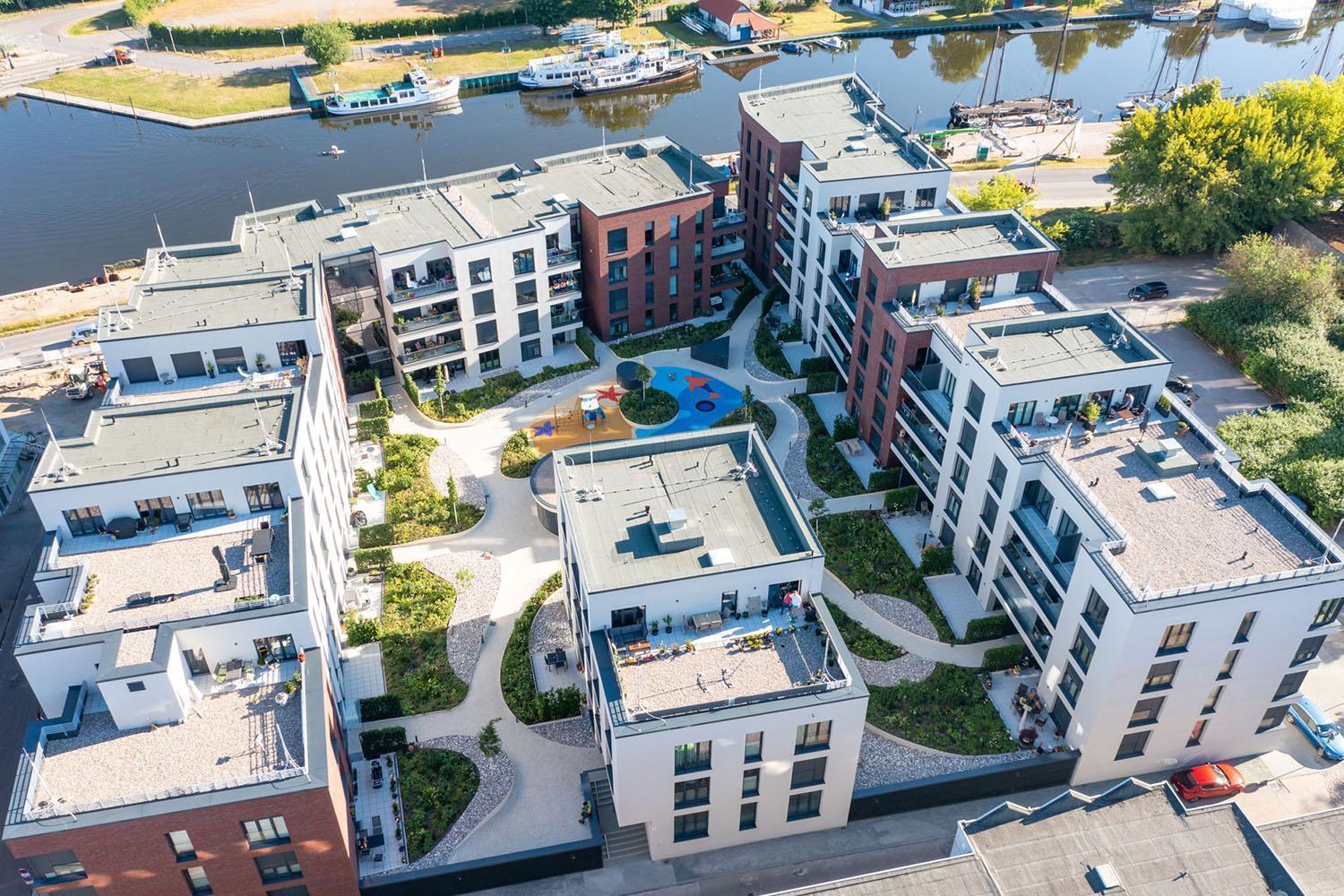 In der Universitäts- und Hansestadt Greifswald wurde in der Innenstadt – direkt am Ryck – ein Neubauprojekt umgesetzt. Das neue Quartier ist dreiseitig geschlossen und beinhaltet 10 Wohnhäuser, 96 Wohnungen und 105 Stellplätze inklusive Tiefgarage.