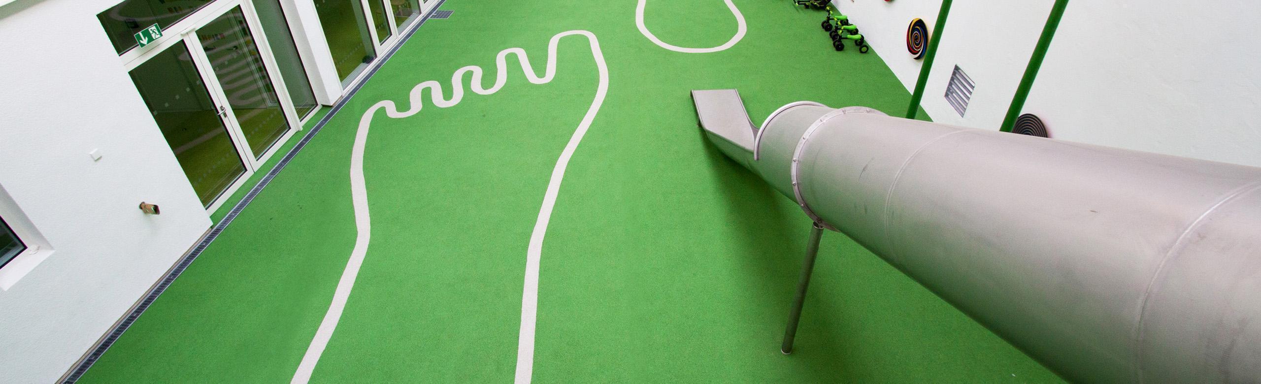 REGUPOL ist Spezialist für die Herstellung und Verlegung von Fallschutzböden aus Kunststoff für Außen- und Innenbereiche. Das Unternehmen bietet mit der Variante REGUPOL playfix indoor sogar einen fugenlosen Fallschutzboden speziell für Innenbereiche mit einer geschlossenen PUR-Oberfläche an.