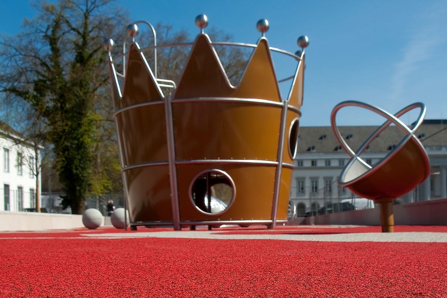 Für den Themenspielplatz im nordwestlichen Bereich des Schlossvorplatzes wählte Landschaftsarchitekt Johannes Czerniejewski (RMP Stephan Lenzen Landschaftsarchitekten aus Bonn) das Thema „Schmuckkästchen der Kaiserin Augusta“ als Gestaltungskonzept. Diese Idee sei in Anlehnung an das historische Ambiente und die frühere deutsche Kaiserin entstanden, die während ihres langjährigen Aufenthaltes in Koblenz prachtvolle Gartenanlagen gestalten ließ.