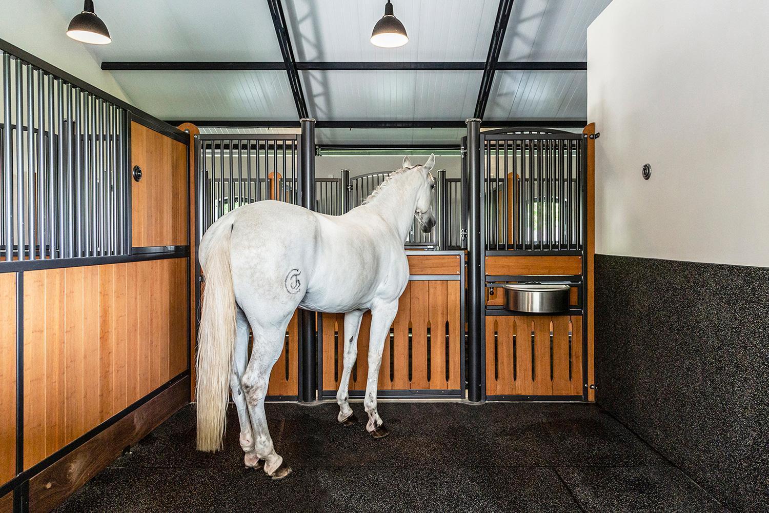 In der Stallgasse und der Führanlage der Haras La Sagisciana liegt unser elastisches Verbundpflaster REGUPOL equiline walkway und sorgt hier für angenehme Laufruhe und einen Untergrund mit hohem Gehkomfort. Auch auf den Paddocks mit direktem Zugang zu den Boxen liegt das REGUPOL Verbundpflaster genau richtig. Die elastischen Steine verbinden eine hohe Stabilität mit sehr guten Reinigungseigenschaften.