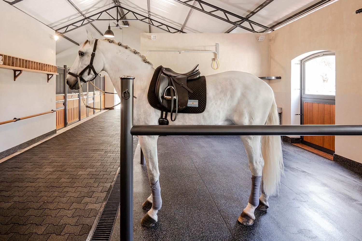 Durch ihre gute Rutschhemmung ist diese REGUPOL Bahnenware auch in den großzügigen Waschboxen im Innenbereich der Haras La Sagsiciana die richtige Wahl.