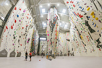 160 Routen auf bis zu zwanzig Metern, 48 davon outdoor. Eine Speedwall, von der es insgesamt nur zwei in ganz Spanien gibt – der Speedwettbewerb war übrigens ausschlaggebend für die Goldmedaille von Alberto Ginés López. Vier Millionen Euro hat das Unternehmen Sputnik investiert und die nun größte Kletterhalle des Landes gebaut.