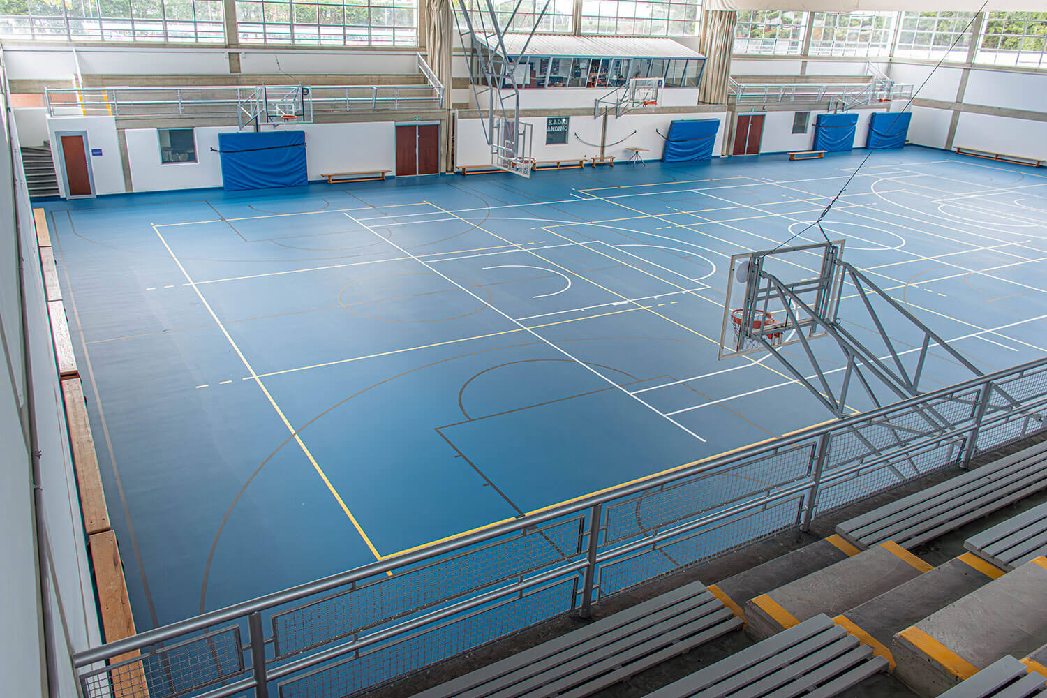 Um den Lernenden nicht nur eine hervorragende schulische Ausbildung, sondern auch optimale Bedingungen für den Sportunterricht zu bieten, wurden in der Sporthalle 1.260 m² REGUPOL Boden verlegt. Der REGUPOL dynamic classic 9+2 in der Farbe Capri Blue schafft ideale Voraussetzungen für zahlreiche Sportarten wie Basketball, Volleyball, Badminton und viele weitere Aktivitäten. Dieser traditionelle Sporthallenboden überzeugt durch gezielten Kraftabbau, hohe Langlebigkeit und dauerhaft gleichbleibende Eigenschaften.
