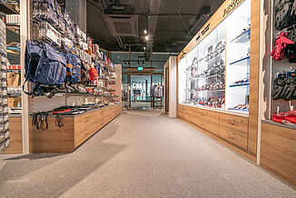 Komfortabel ist auch der REGUPOL everoll alpine Wintersportboden in Shops und Laufwegen. Er lädt durch seine Elastizität zum Verweilen ein, schont ganz nebenbei die Gelenke und reduziert Trittschall. Das hauseigene Skidepot wurde ebenfalls mit REGUPOL ausgestattet. Durch die rutschfeste Oberfläche mindert der Bodenbelag die Rutschgefahr – selbst in Nassbereichen. Er ist angenehm fußwarm, was noch mehr Komfort für die Gäste bedeutet. So können sie gemütlich auch barfuß oder in Skisocken über den Boden laufen.